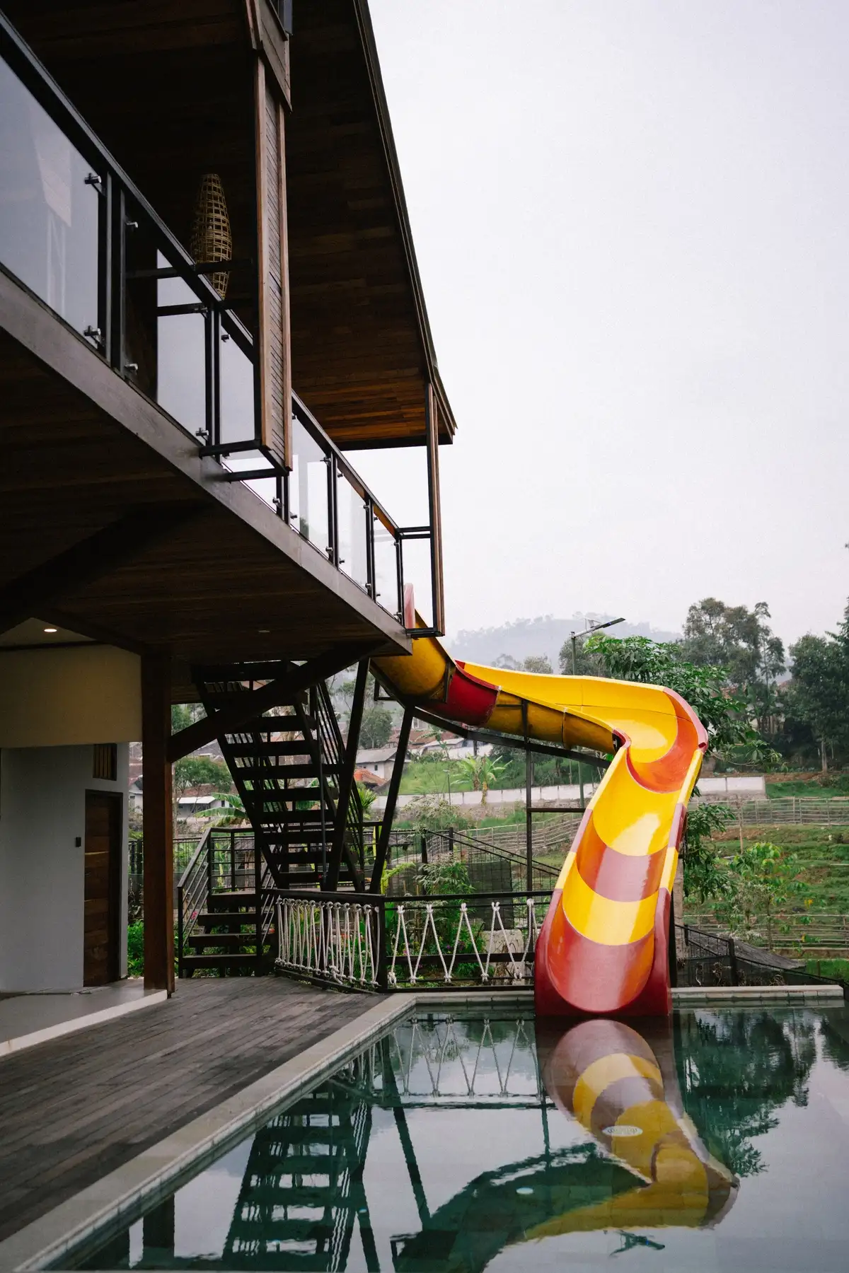 Fasilitas kolam renang anak di Saung Komando dirancang aman dan menyenangka...