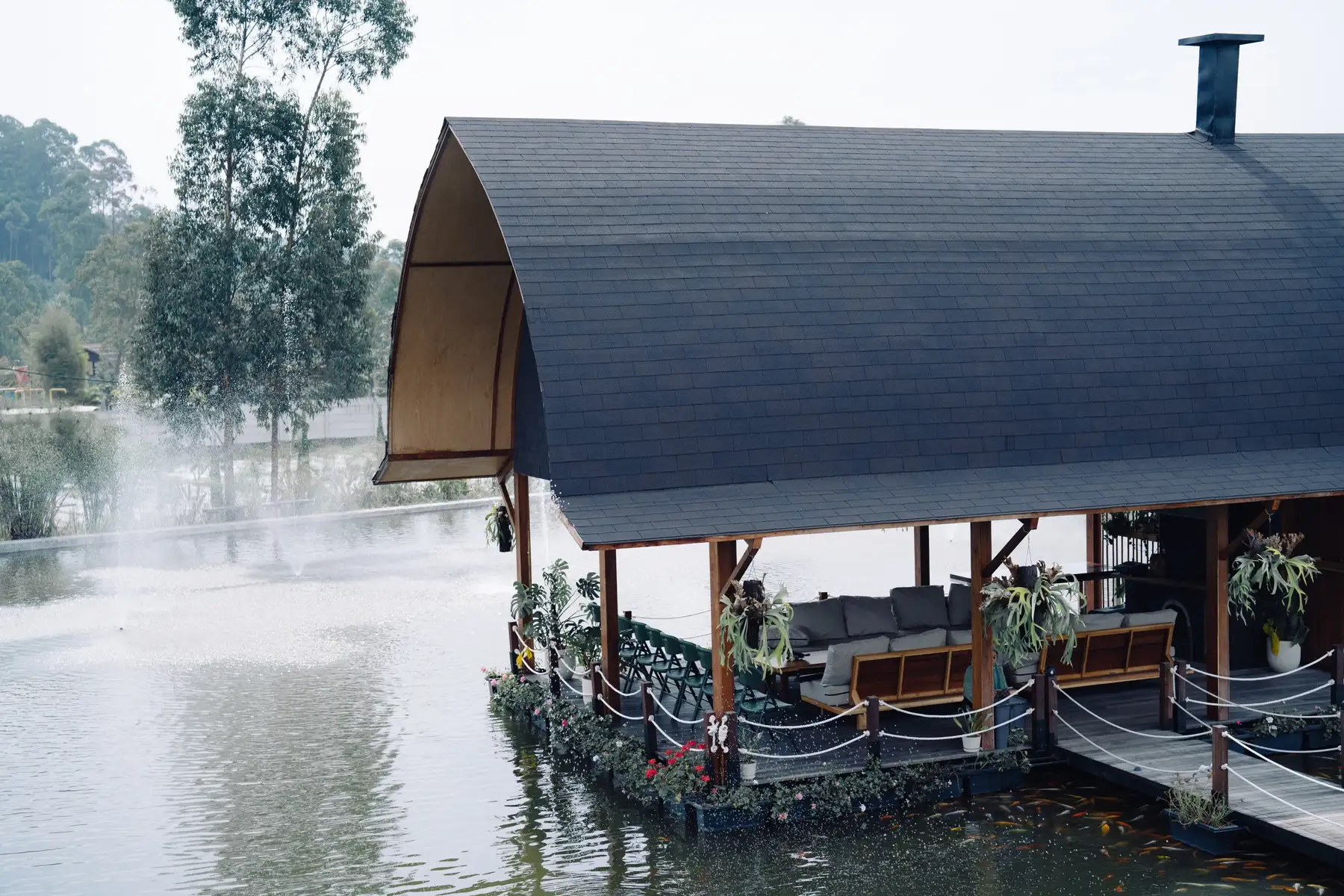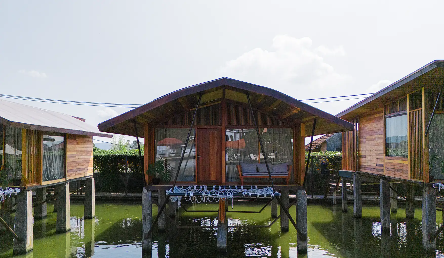 Hunian kayu eksklusif di atas air dengan suasana tenang, hangat, dan privat...