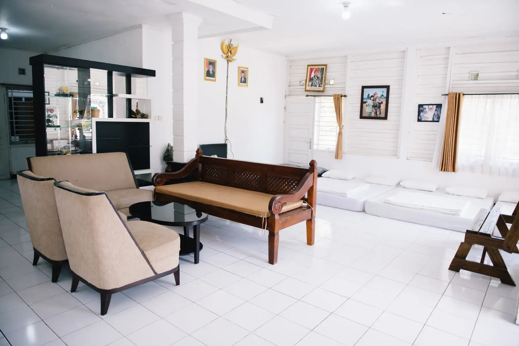 Penginapan luas dengan nuansa kayu yang hangat, menciptakan suasana tenang ...