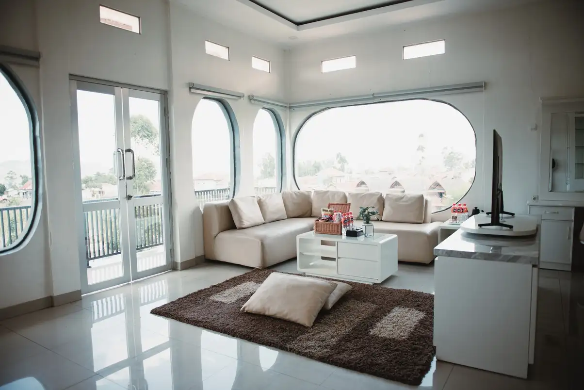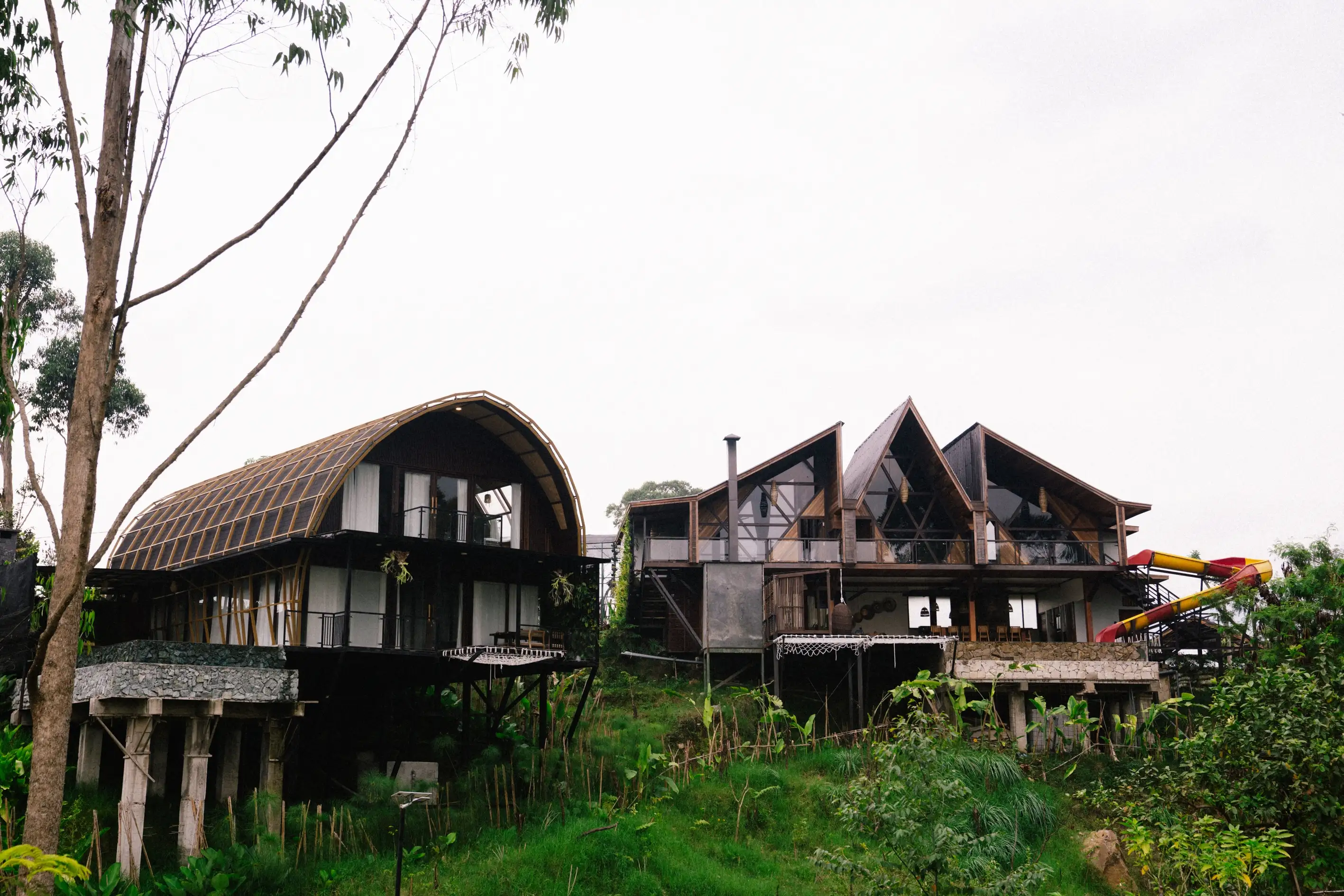 Villa Kihujan di Saung Komando menghadirkan desain lengkung ikonik dengan s...