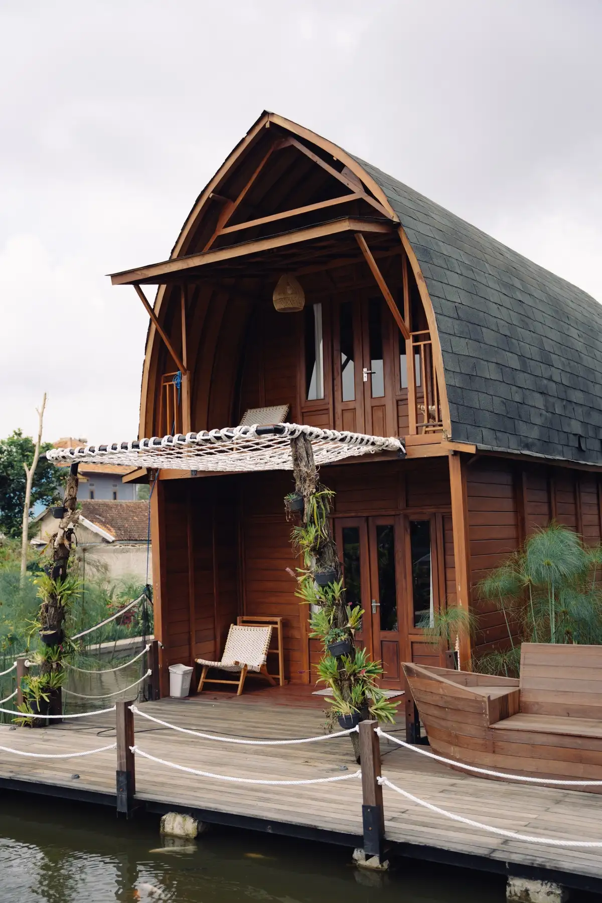 Hunian kayu eksklusif di atas air dengan suasana tenang, hangat, dan privat...